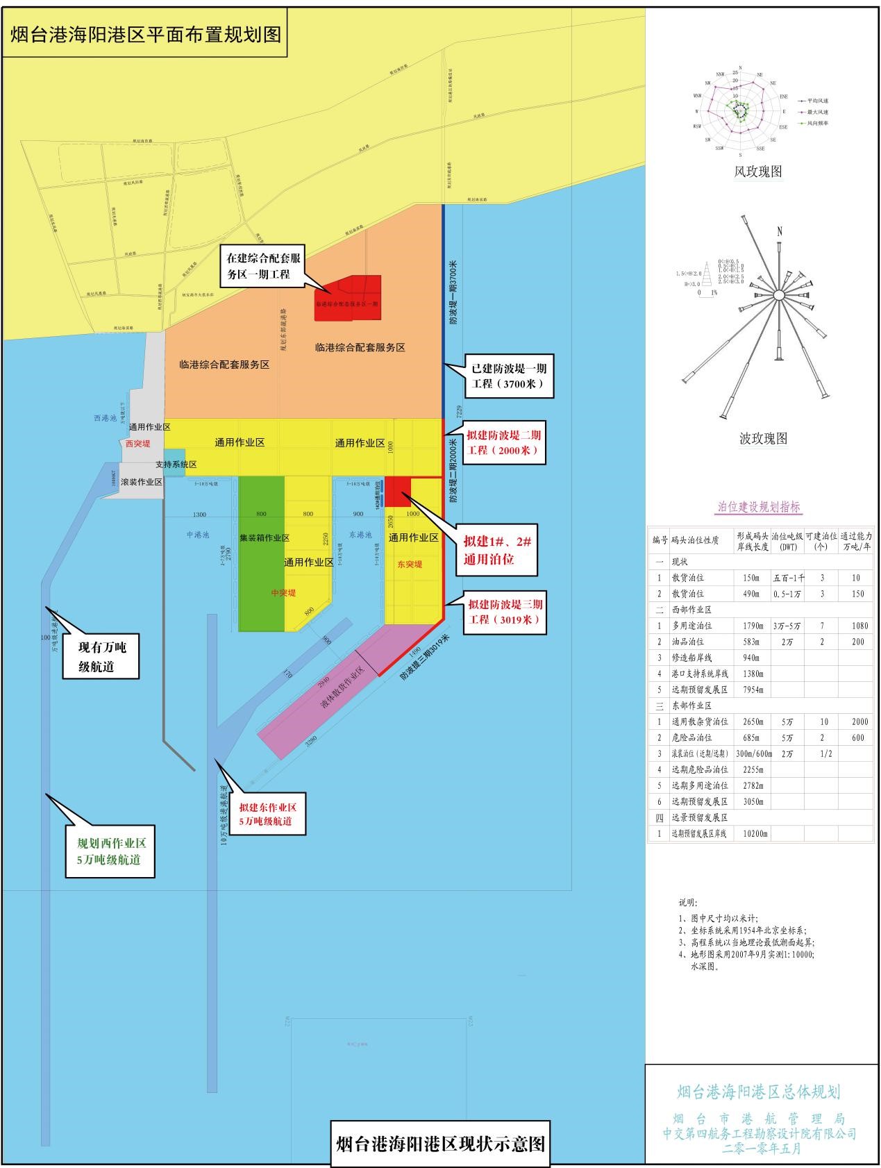 The Haiyang Port District of Yantai Port is located on the southern coast of the central Shandong Peninsula and is an important hub of the national integrated transportation system and our country’s coastal area main ports. The whole port area is divided into three port ponds in eastern, middle and western direction and three breakwaters in eastern, middle and western direction.The total length of the wharf's shoreline is 15.5 km, with a total land area of 29 km2, which can form 55 berths of various types of wharves. The annual comprehensive capacity is 65 million tons, 3 million TEUs, 400,000 vehicles, and 100,000 persons. The total investment of the project is 15.7 billion yuan. The first phase project has completed investment of 597 million yuan, and the second phase project plans to complete investment of 3.167 billion yuan.